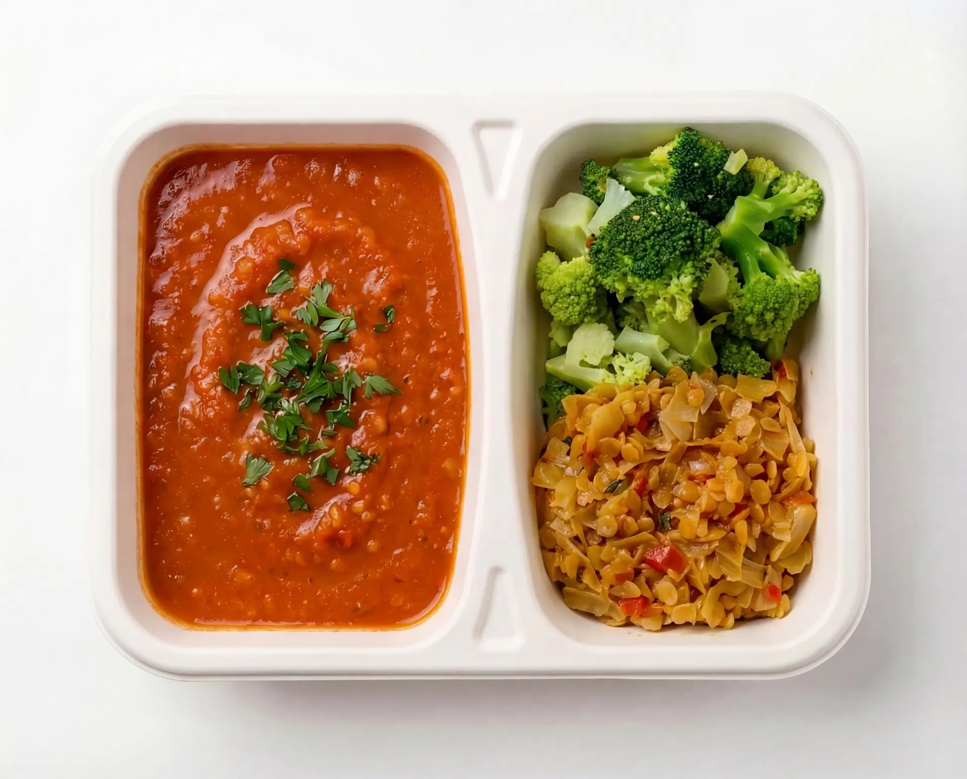 Dinner: Tomato and lentil soup with roasted cauliflower