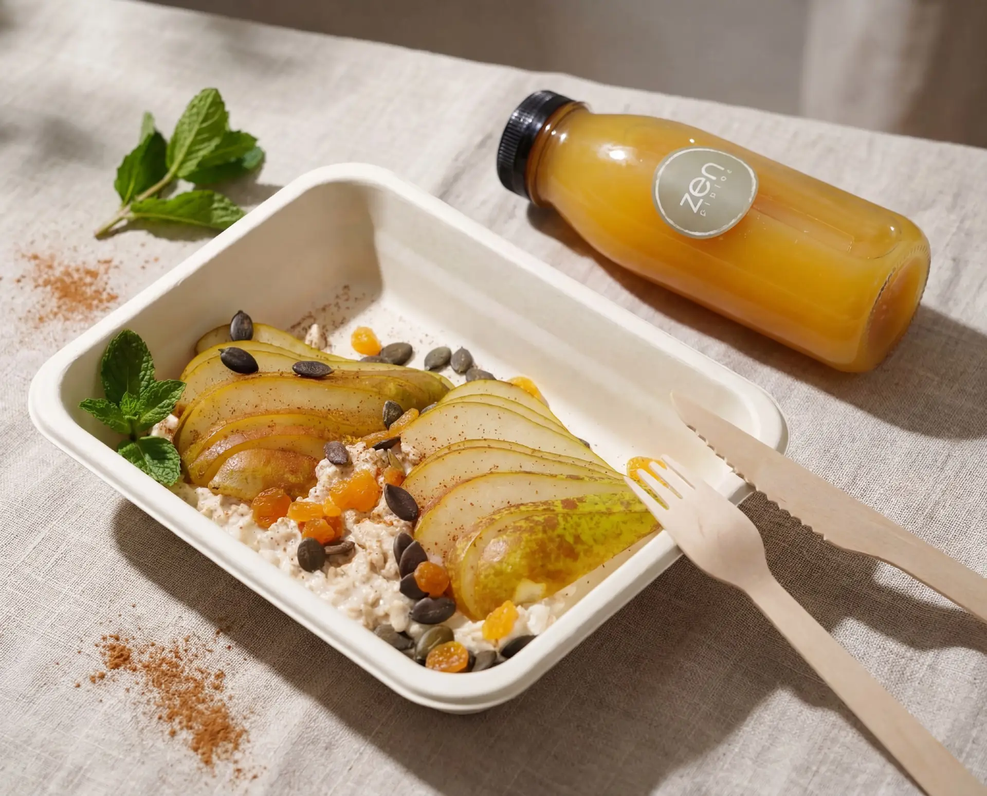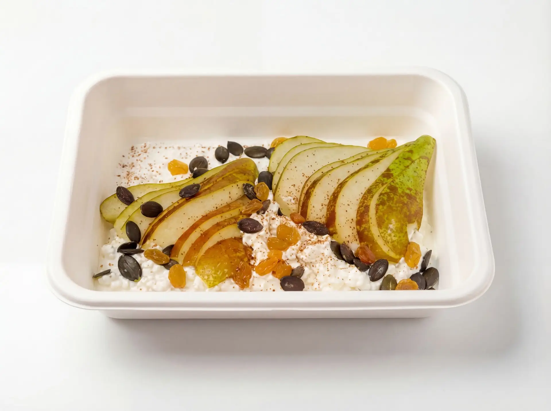 Breakfast: Cottage cheese with pears and pumpkin seeds